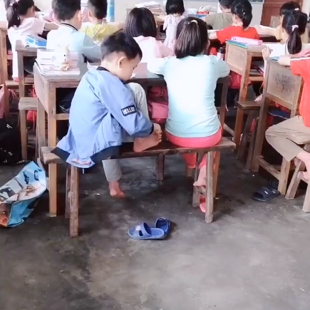 有一次课堂数学测验,正好到放学的时候,很多学生都没有做完测验,所以在教室里老实地算着题。接学生的家长都到了学校,由于学生还在测验,家长只能在窗户外面等,而仔仔坐最后一排,也受到了妈妈的关注。在一瞬间,仔仔的家长拍下了仔仔测验的一幕,由于课堂测验中,有数字相加的情况,仔仔首先用手指去数,接着手指不够,竟然把鞋子脱了用上了脚趾,一个脚趾接一个脚趾的数着,在外面的妈妈笑了。并录制了视频发到了群里,后来老师才知道仔仔想要坐到最后一排的目的。
