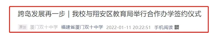 1、翔安区与双十中学再牵手,与振南中学实施合作办学!