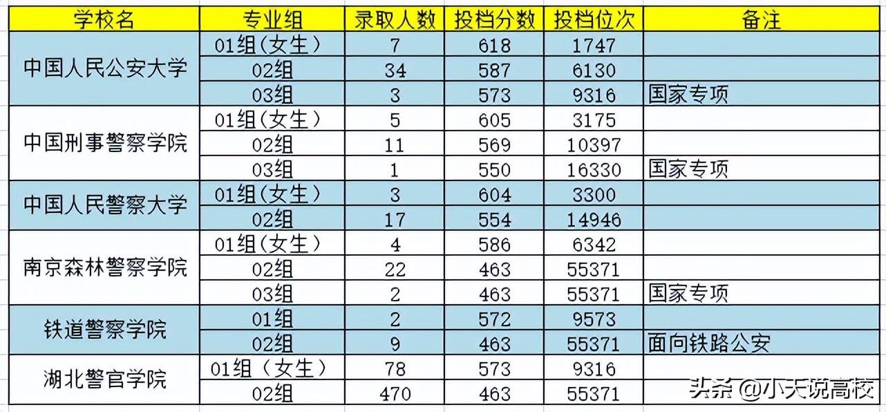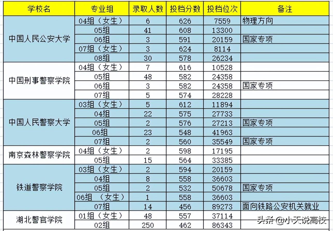 从录取分看,分数最高的学校是中国人民公安大学、分数最低的是湖北警官学院。