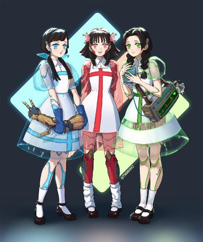 这位画师不光拥有非常华丽的画风,还有具备了超强的脑洞,当他将鬼杀队中的美女们变成机械朋克风之后,我们可以看到虫蛀蝴蝶忍、祢豆子以及恋柱甘露寺蜜璃完全不同的美!一种很有科幻风格的美!