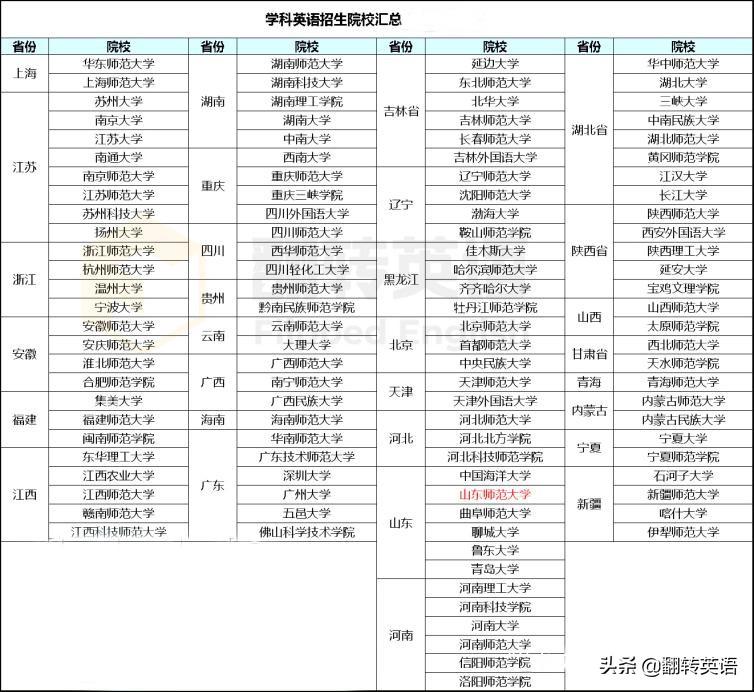 学科英语招生院校汇总