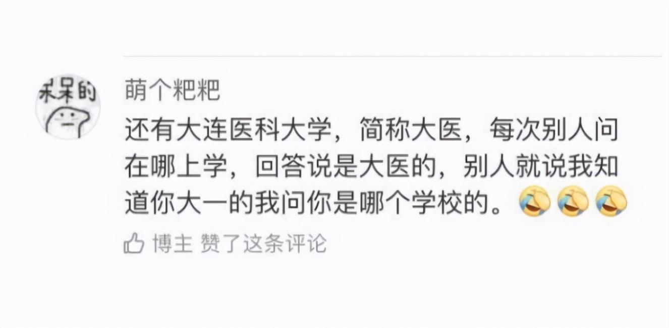 下面这位网友表示自己就读于大连医科大学,学校简称“大医”,于是每次有人问他在哪里上学,他都习惯性地回答一句:大医的。