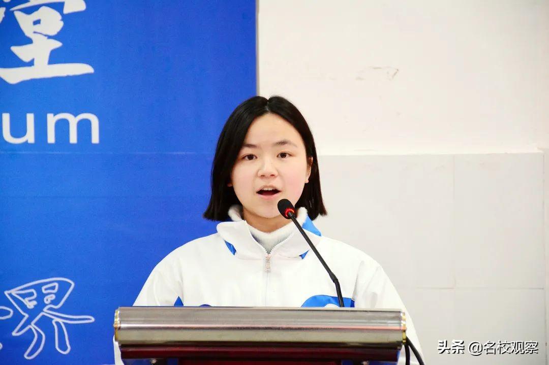 高三学生代表邹博琳发言,表示在未来的一百天,脚踏实地,全心投入,不求“一步登天,但求步步为营”;更行十万八千里,不惧东西南北风;咬牙拼搏,用实力成就自身价值。
