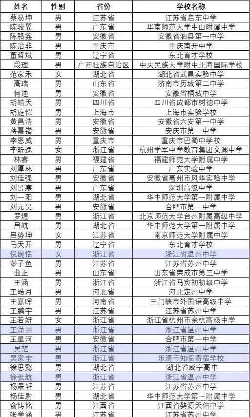 浙江10名学生中,其中5名来自温州,在地级市中上榜人数最多。包括来自温州中学的高一学生王潇羽、吴楚、徐张航,高二学生倪婉恬,还有乐清市知临寄宿学校初三学生吴家宝,其中吴家宝同学年仅13岁,是少年班今年招录的最年轻的学员。