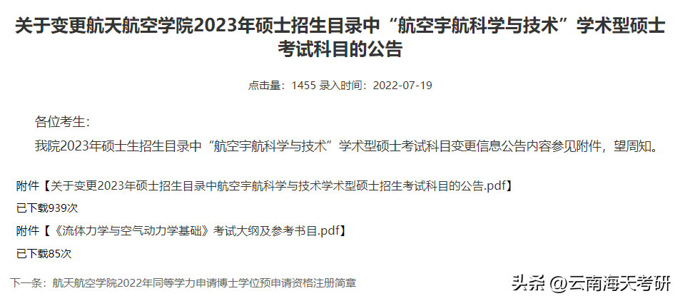 西安交通大学航天航空学院发布关于变更2023年硕士招生目录中“航空宇航科学与技术”学术型硕士考试科目的公告。