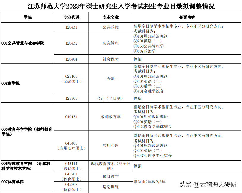 江苏师范大学发布关于调整2023年硕士研究生招生考试专业目录的预通知。