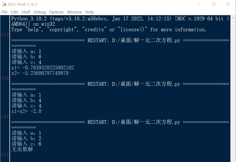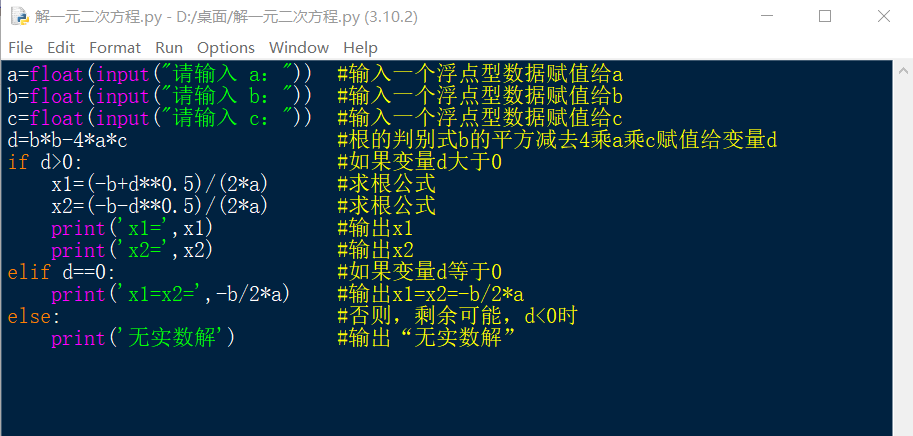 打开本题所在文件夹 C:\OMExam\python 中的"一元二次方程.py"文档,完成