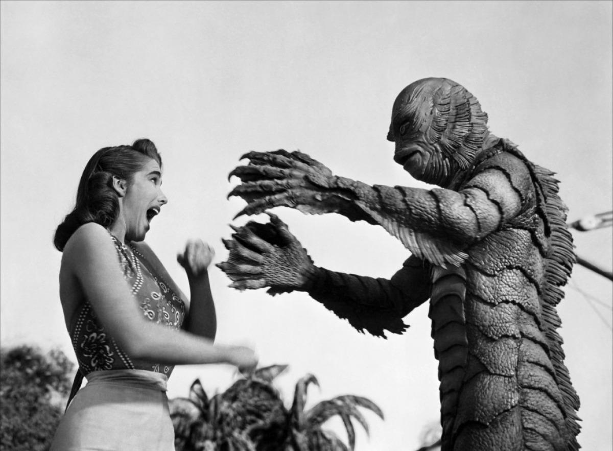 可是早在50年代的好莱坞恐怖片中,水怪的类人化形象便已经出现,它们身披鱼鳞、手脚完成了进化,而超强的体格和残酷的本性一度作为反派登场,成为了人类公敌。