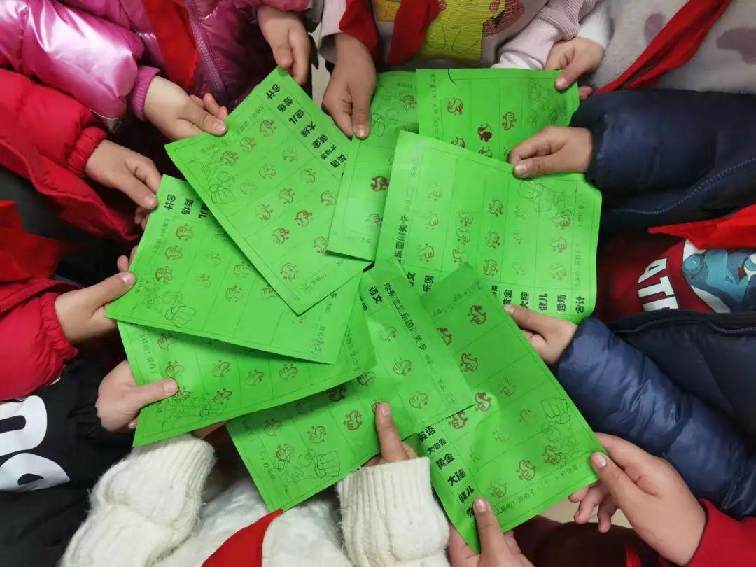 第一关:我用“贺卡”表心意,让孩子们学习制作新年贺卡,给家人或朋友写一句祝福的话,在培养想象力和动手能力的同时,进一步激发孩子们热爱生活、热爱学习的热情,加深了亲友间的情感。