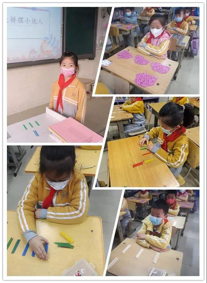 第一关:我是拼摆小达人,学生们用手中的学具摆一摆指定数字的倍数,结合二年级学生好奇、好动的特点,为孩子提供动手操作的机会,既巩固了知识,又收获了快乐。