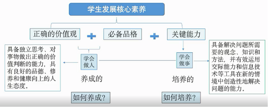 核心素养是学生在接受相应学段的教育过程中适应个人终身发展和社会发展所需要的正确价值观、关键能力和必备品格。