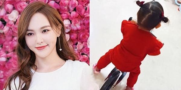 唐嫣大方晒娃 2岁小小糖扎丸子头骑车