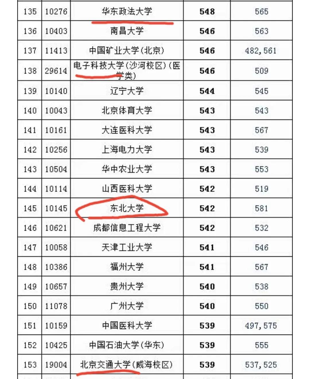 上海财经大学只有608分,中央财经大学离600分还差9分,天津财经大学只比最低分数线高两分,等等。
