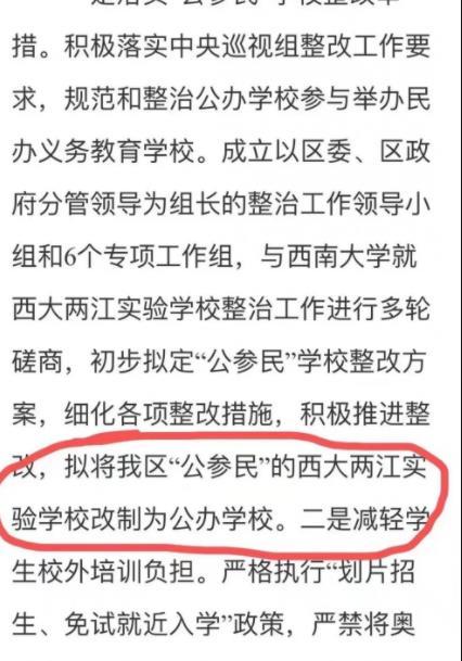 这项新政是规范“公参民”学校,新政中指出公办学校单独举办的私立学校,公办学校和地方政府或者相关机构合作办学的学校,应该公立学校而不是私立学校,这个措施实行,很多私立学校都将从民办转为公办。