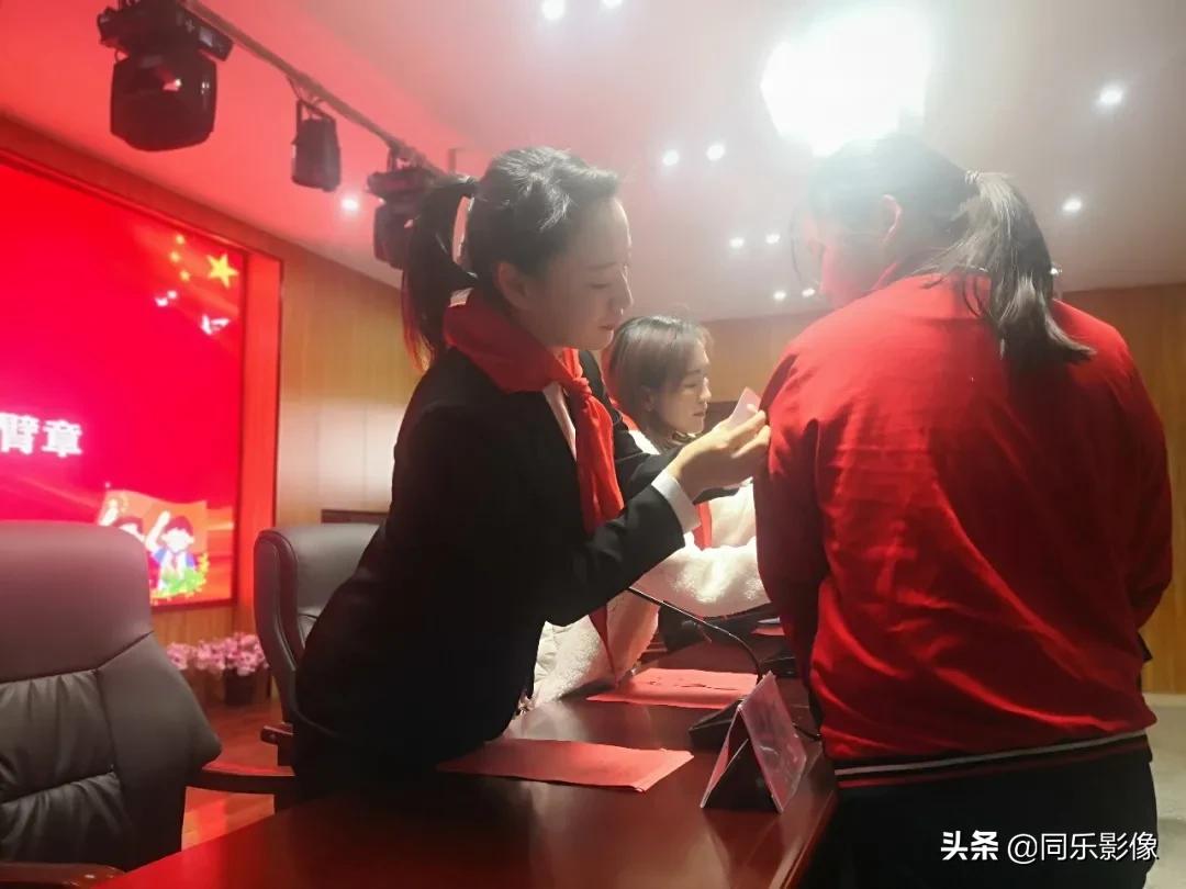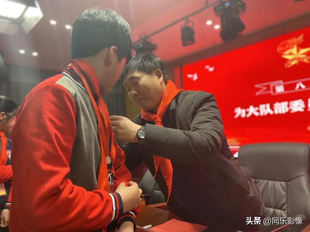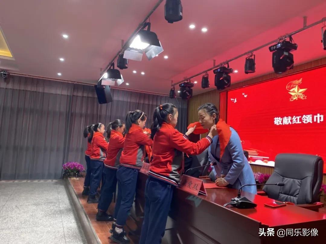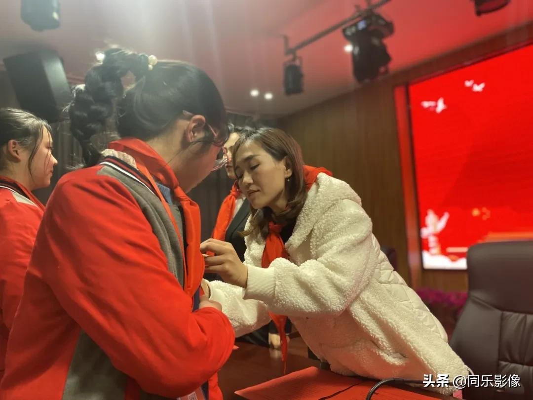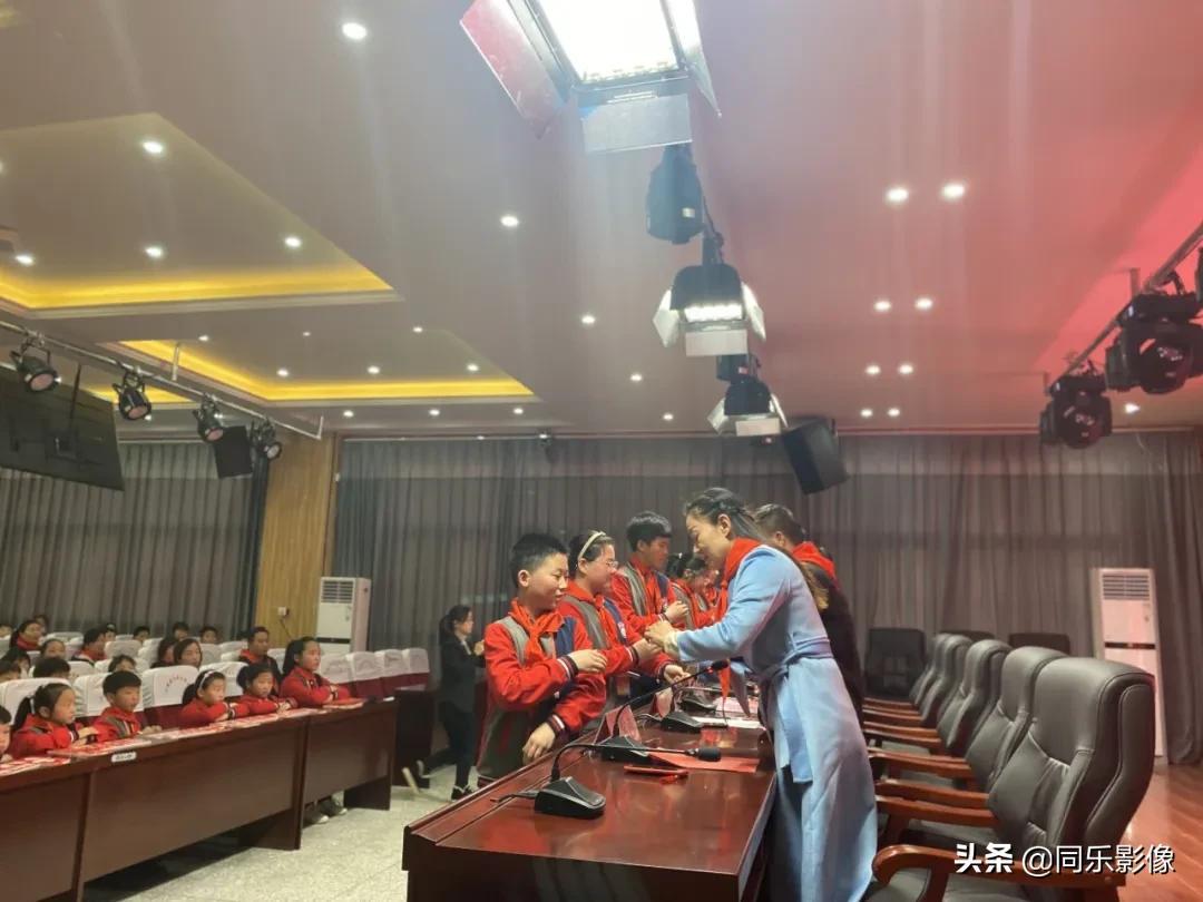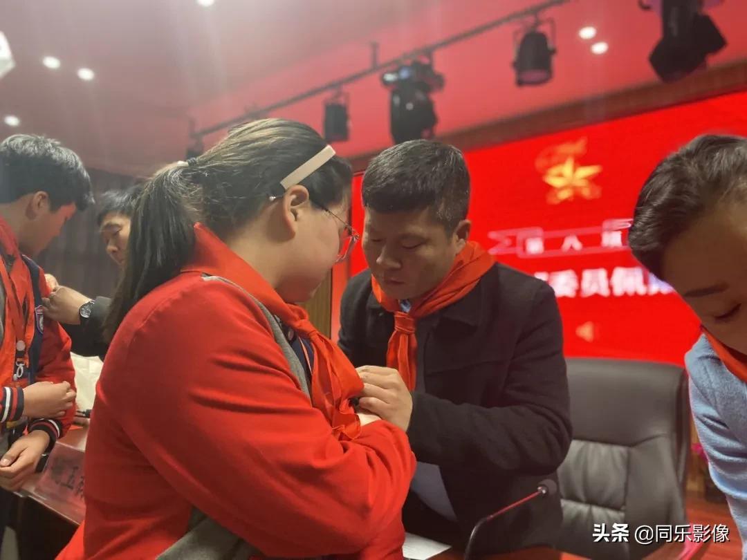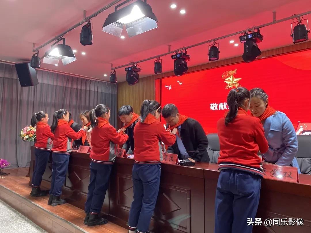 少先队员代表为参会领导献上了少先队最珍贵的礼物一一红领巾