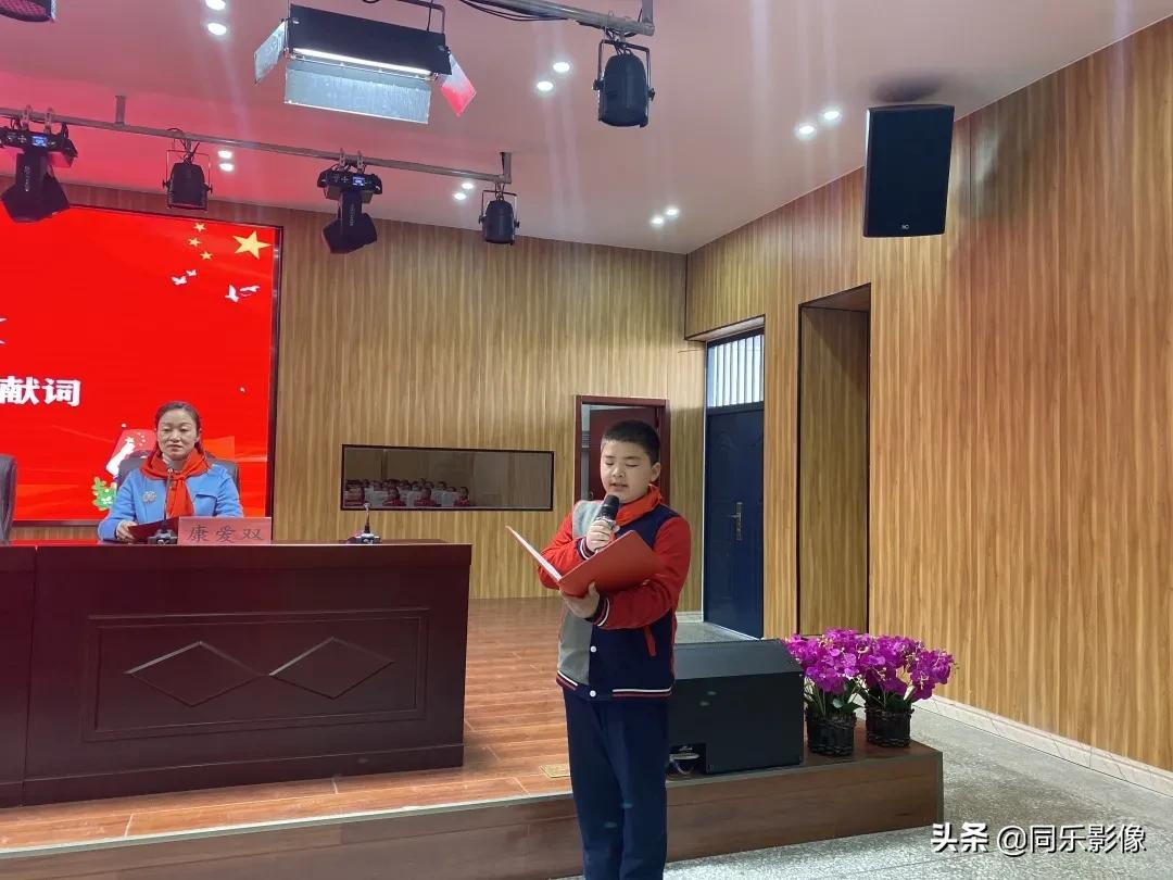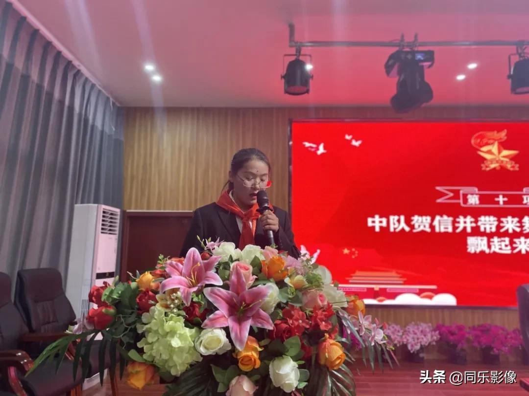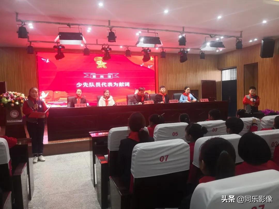 少先队员代表为大会献词,展现新时代少先队员的风采,表达了高举队旗跟党走的决心。