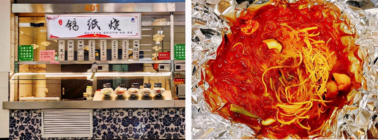 锡纸烧的汤汁在锡纸中沉淀,配菜的风味协同汇拢,肉料的鲜美喷薄欲出,顺滑的粉条来者不拒。高温烧烤,辛鲜杂糅,滋味让人念念不忘。