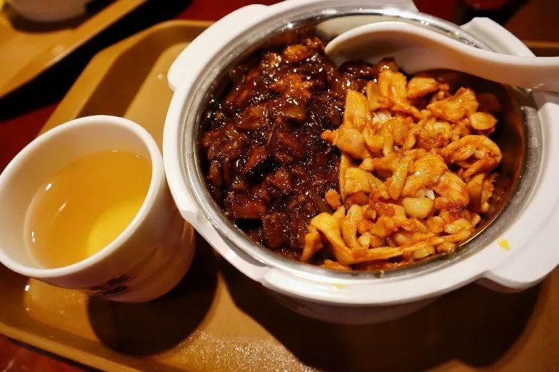 萌锅蒸饭肉块切丁、菜蔬剁碎、油醋包裹,淋上脂香持久的汁水,甘甜不腻的茶水精心上桌。轻巧一勺,细腻的米粒富有弹劲,万千风味,在大锅蒸汽中得以相拥,每每香气四溢,食物的温暖便植入心底。