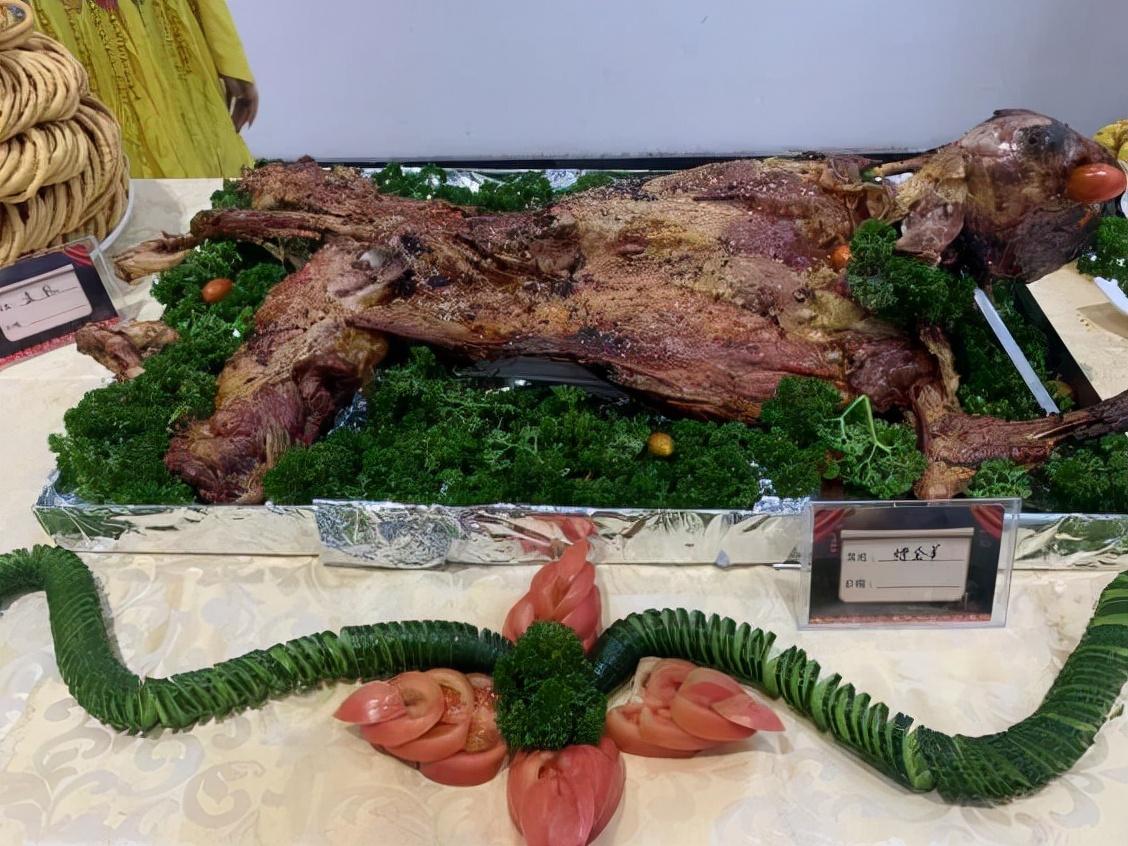 东北师范大学食堂展出建党百年主题、绿水青山等主题美食雕刻,以及带有校训字样的雕刻菜品,此外还特制了长达6米和4米的节庆蛋糕免费赠送,引得师生驻足观赏品尝。