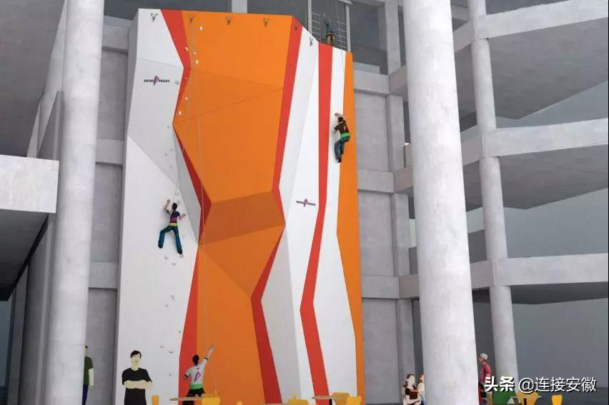 根据国际EN12572规范,模拟实际岩石的不同角度,以3D集合平面组合而成。高12米,宽8米,包含手攀岩道6条,高空垂降通道1条。