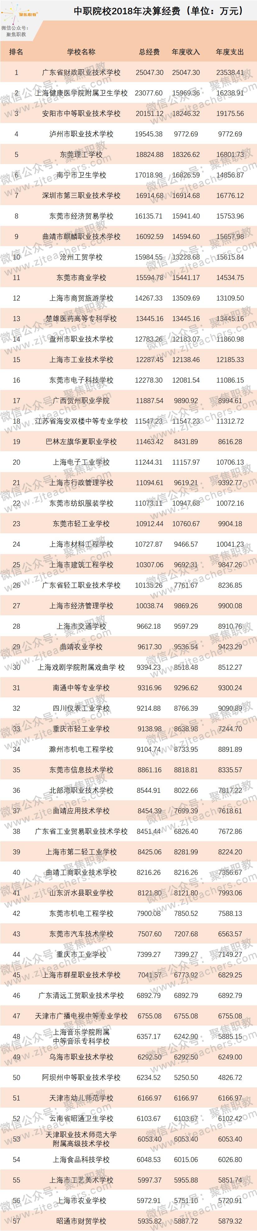 聚焦职教(ID:zjteachers)小编对全国472所中高职院校(含技工院校)2018年部门决算数据进行整理,发现共有3所职校年度经费超过10亿元,1亿-10亿的301所,5千万-1亿的70所,1千万-5千万的81所,1百万-1千万的有15所,1所处于10万级别,同时,有1所职校仅超过1万元。