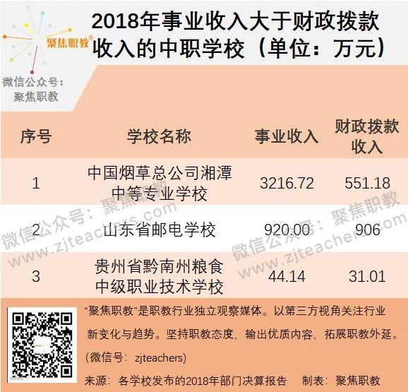 2018年,也有3所中职院校 “凭自己的本事吃饭”,其事业收入超过财政拨款收入。