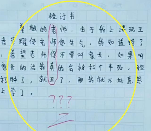 而且孩子心智未成熟,觉得老师让自己写检讨书,是让自己丢面子。所以故意和老师对着干,会在检讨书里表面自省暗地里“内涵”,让老师更生气。