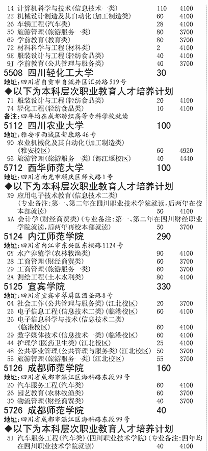 据统计,今年职教本科项目,本科学校新增了西南科技大学、西南医科大学、成都大学 、绵阳师范学院、宜宾学院、乐山师范学院、四川民族学院、成都理工大学工程技术学院8所。相比去年的9所,增加了几乎一倍的数量,更多的应用型本科参与到职业教育人才的培养。
