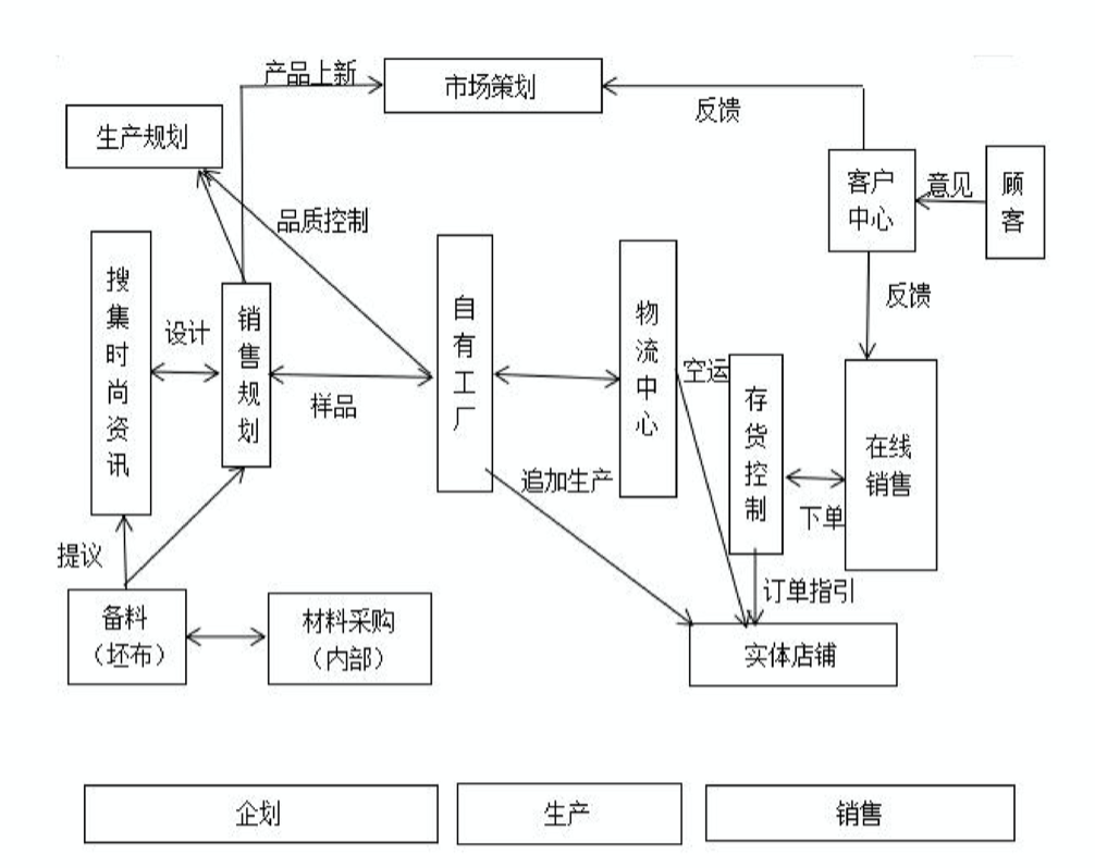 可见,有效的信息系统和快速反应的供应链是 SPA 成功的关键。通过收集店铺终端消费者的反馈,企业可以及时获得有关市场的需求信息。因此,有效的信息系统是 SPA重要的支撑,而快速的供应链可以缩短产品生产与物流的时间,保证产品的快速上新。