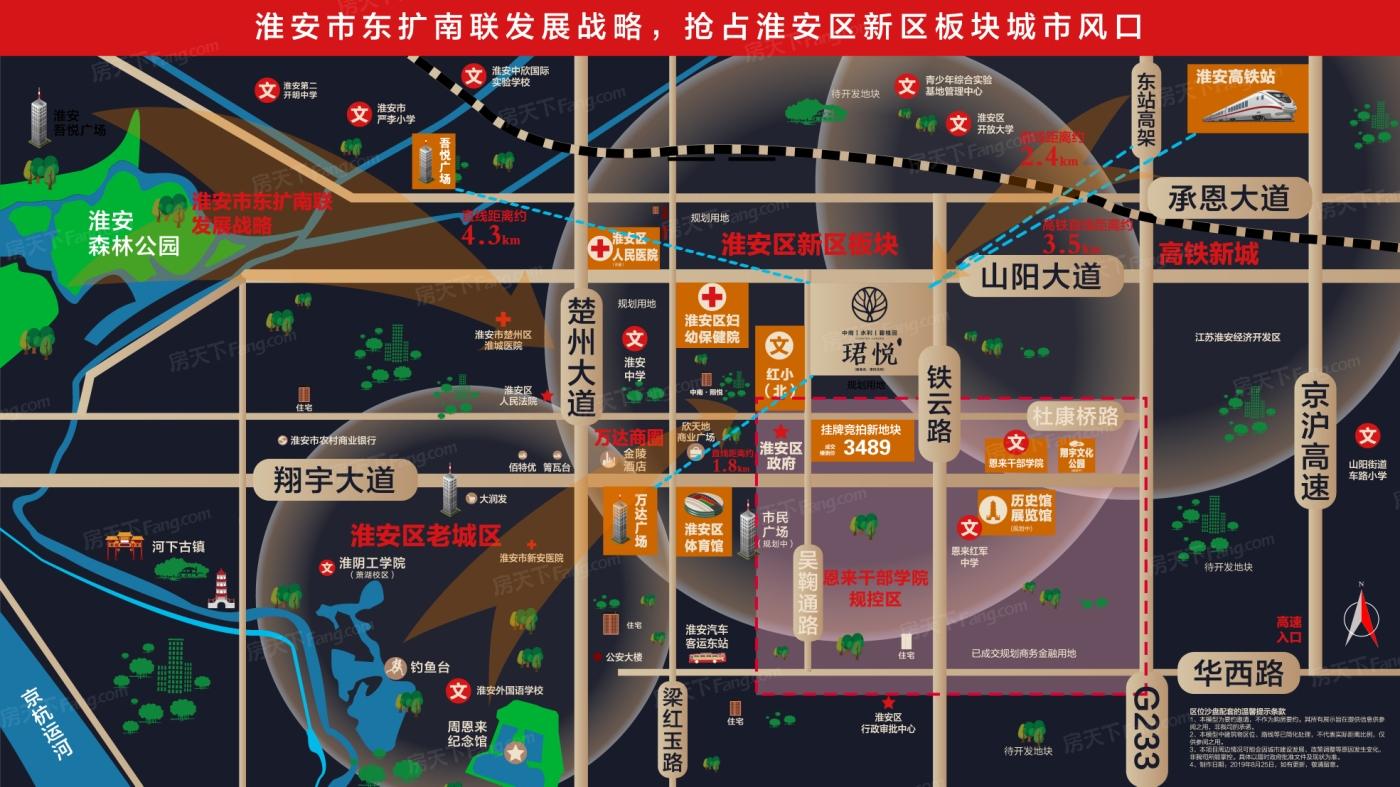 延安路高架、高铁东站、涟水机场学校:淮阴工学院、南京林业大学,商场:万达商场医院:二甲医院、新妇幼保健院、第一人民医院其他:九龙湖公园