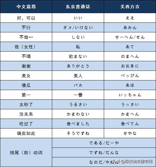 咱们也不来虚的,直接上日语普通话和关西方言的对比,如果你学过日语,那么看到关西方言你可能会一眼懵;如果你没学过日语,那么也能够从句型的长短来看出不同。