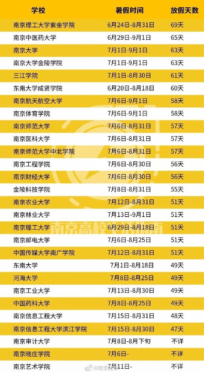 6、7月,不仅是高考季、毕业季...还有让工作者们really羡慕的暑期!各地高校的暑期一览表出炉,哪所学校放的最早最久?看看都有哪些学校吧: