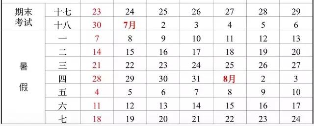 ▷7月13日学生放假,7月17日全体教职工放暑假,8月24日至25日学生报到、注册、领教材,8月26日正式上课,暑假共计38天。