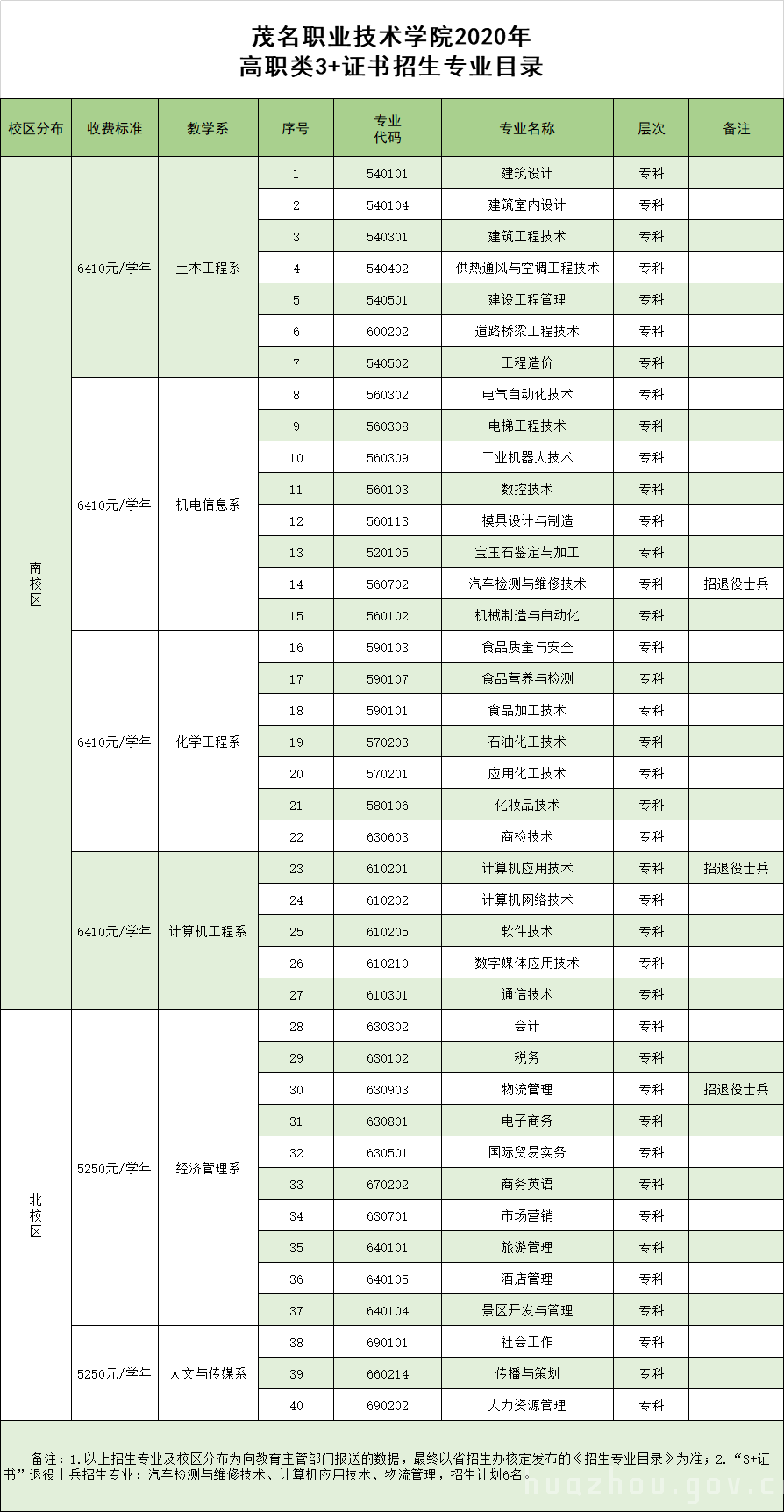 (学费、宿舍费等信息参考自《广东省2020普通高校春季高考统一招生目录》,具体数据以学校官方为准)