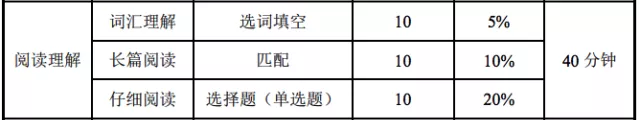 其中仔细阅读分数占比最大,如果说仔细阅读是2分一题,那么段落匹配是1分一题,选词填空就是0.5分一题。