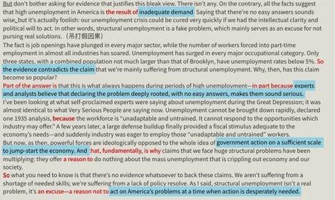 下面这张图可以让大家感受一下,逻辑关系词的强大,其中红色部分是逻辑关系词,蓝色部分就是答案信息。所以,在做阅读时,看到逻辑关系词要高度重视,可以帮助你快速找到答案的关键信息!