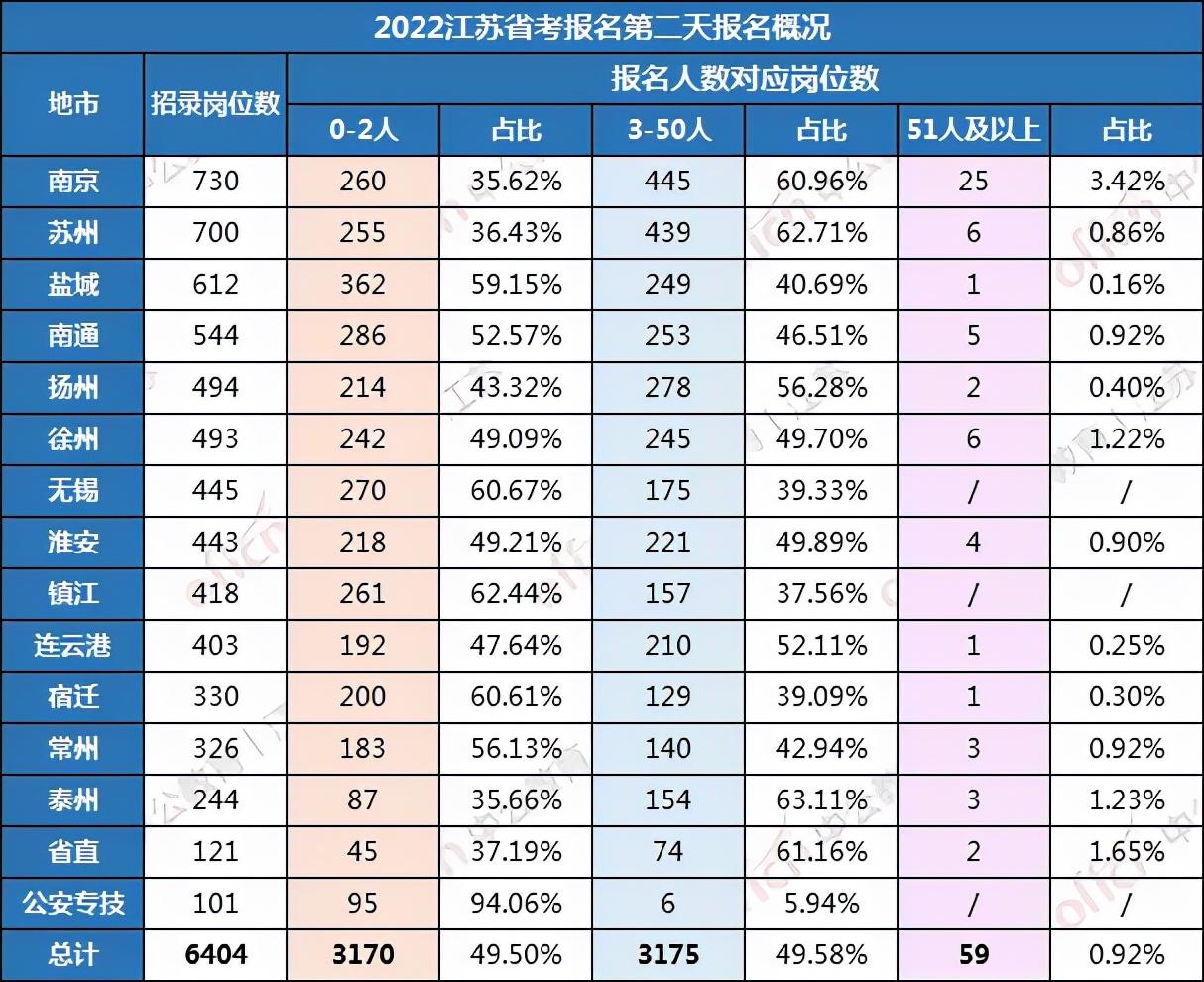 截止今日,2022江苏省考报名工作进展到第二天,根据18点的报名数据统计,我们可以看到各地的报名情况。