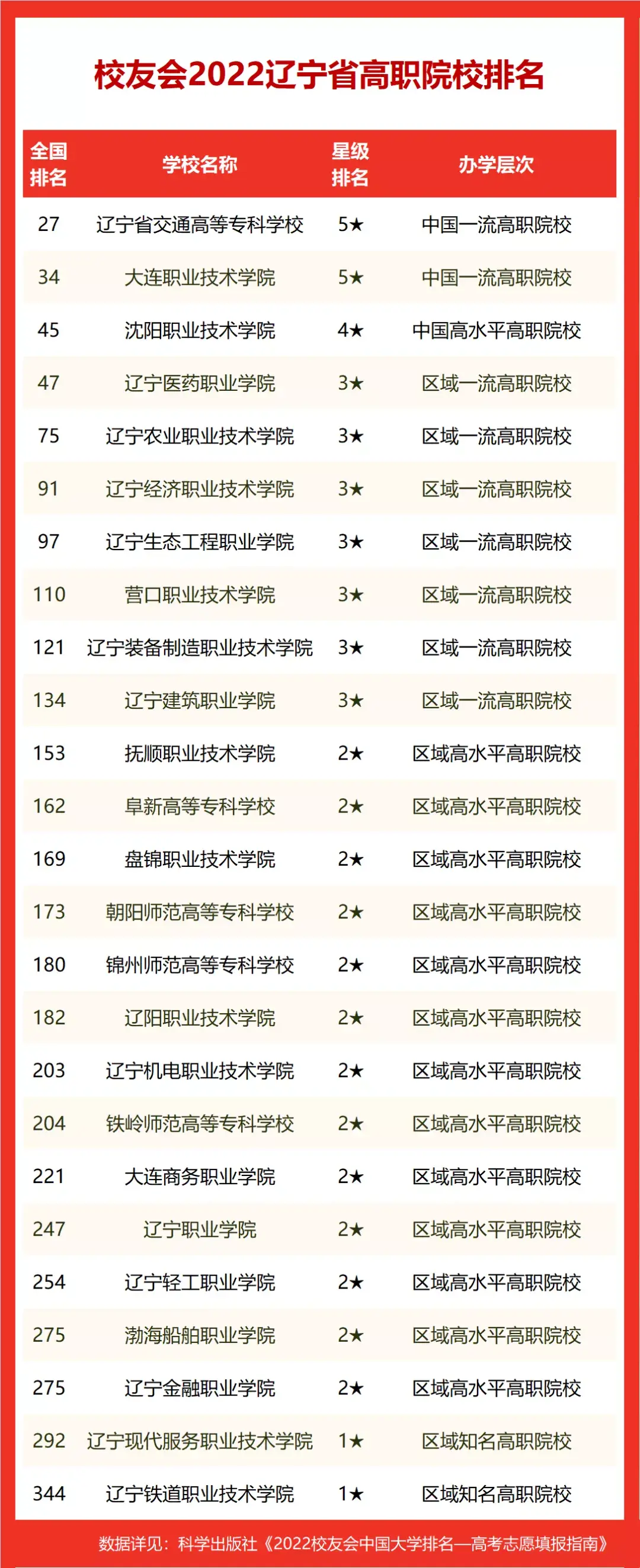 辽宁省交通高等专科学校雄居2022辽宁省高职院校排名冠军,沈阳职业技术学院跻身前3强