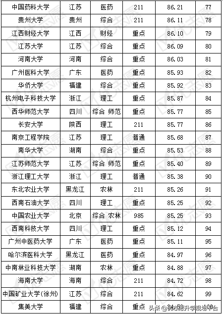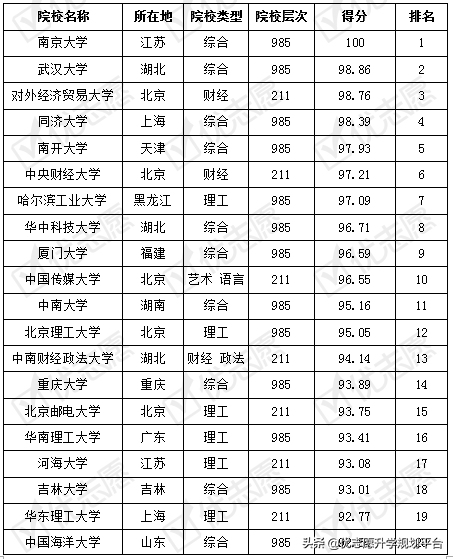 注:1.本排名代表各院校此专业的综合考取难度排名,单个省份中可能存在差异;2.本排名不包含以试验班招生且招生简章中未注明具体招生专业的院校;3.本排名不包含中外合作院校;4. 重点包含省重点和全国重点。
