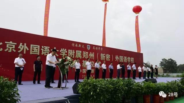 8月6日上午,北京外国语大学附属郑州(新密)外国语学校(ZHENGZHOU INTERNATIONAL ACADEMY.BFSU)(简称“北外郑州附校”)在郑州大学南路(新密曲梁)举行开工典礼。河南省政府、省人大、省政协、省军区、北京外国语大学、郑州市政府、新密市政府相关领导及河南永创教育集团、河南信息工程专修学院及施工单位近300名嘉宾代表出席了开工典礼。