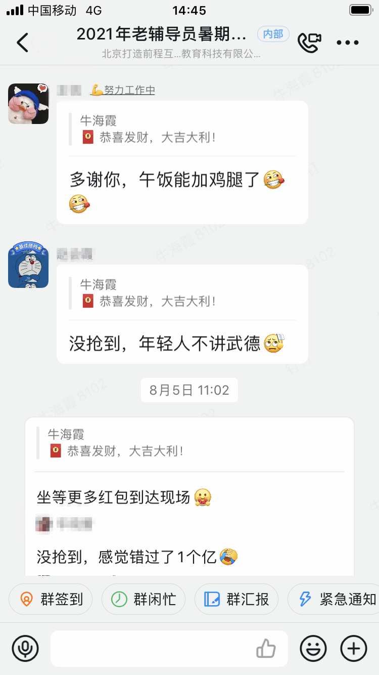 在培训的间隙,前程学院还设置了有趣的“幸运大抽奖”和“钉钉红包雨”环节,活跃直播间的气氛,提高大家的积极性。