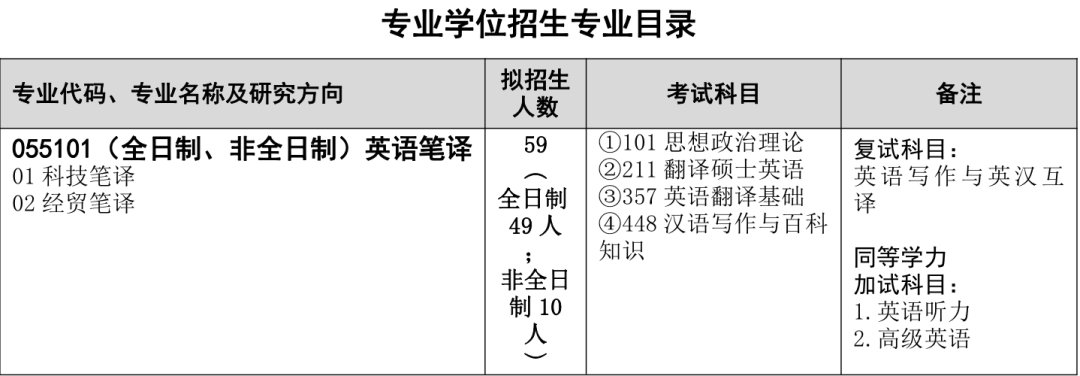 第三个是武汉科技大学的英语笔译专业,22年全日制拟招生人生49人,非全日制拟招生人生10人,研究方向有2个,一个是科技笔译,一个是经贸笔译。