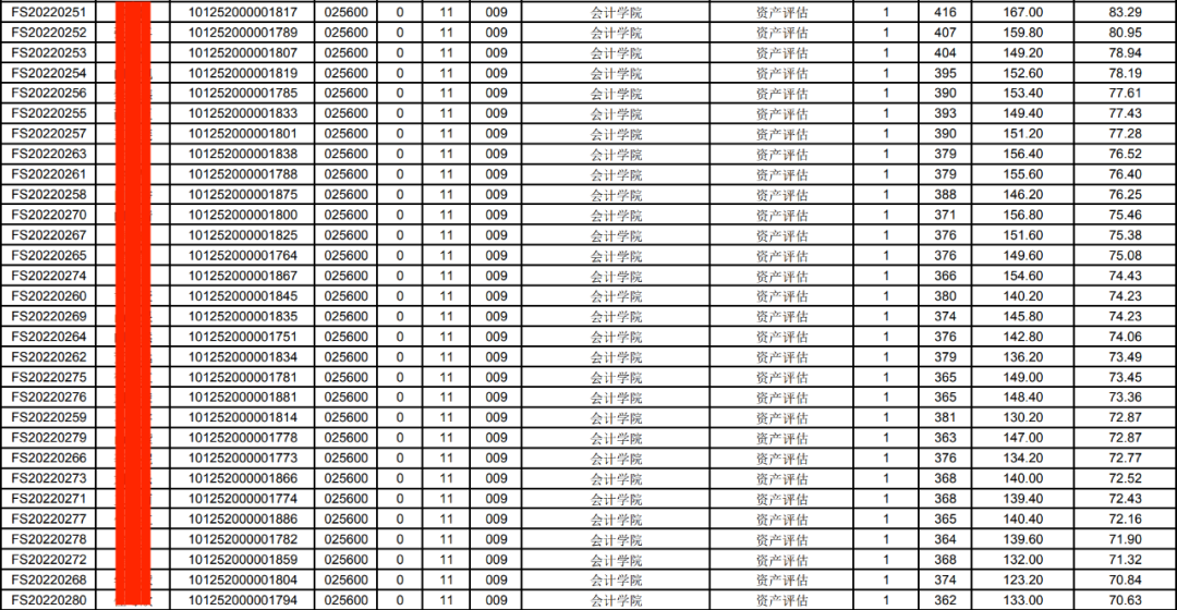 首先是山西财经大学的资产评估专业,去年录取的最低分是360分,共录取了52人。