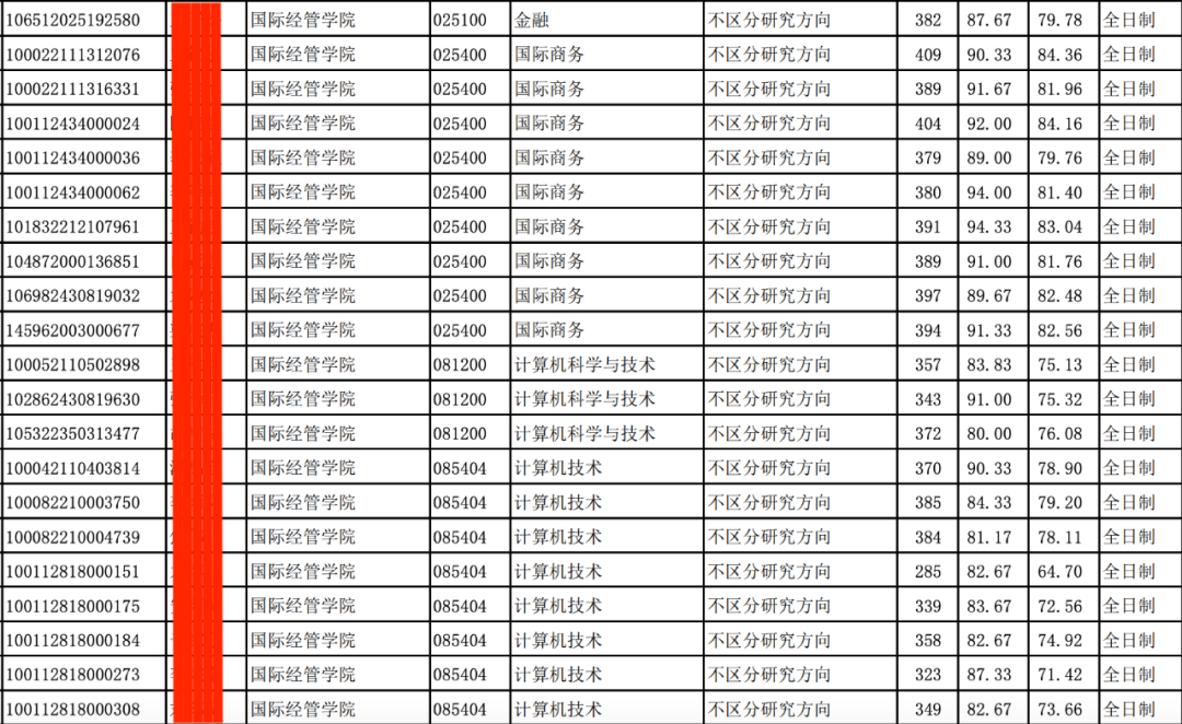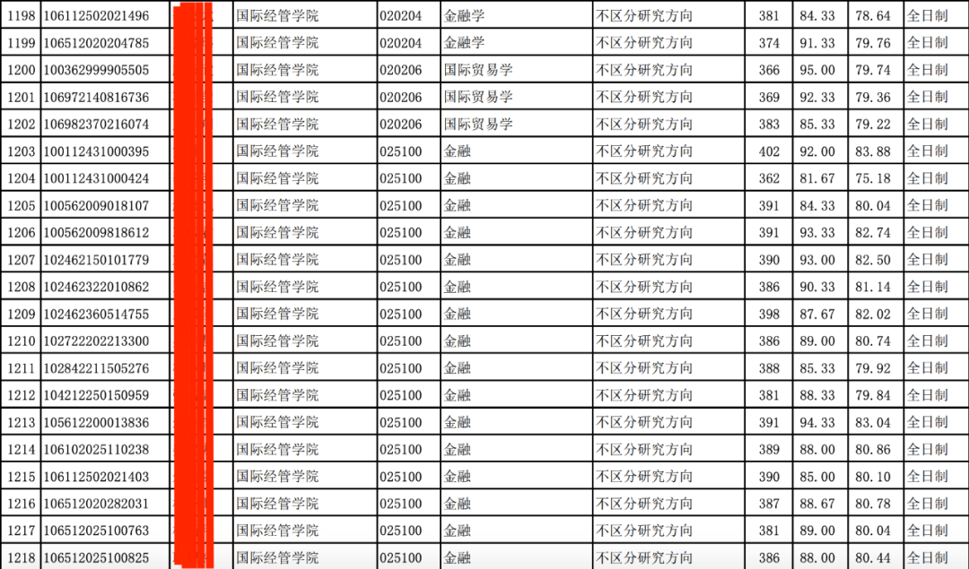 第四个是北京工商大学的经管专业,去年金融学录取的最低分是366分,共录取了15人;国际贸易学录取最低分为366分,录取3人;金融专硕最低分362分,共录取17人;国际商务专硕最低分379分,共录取9人。