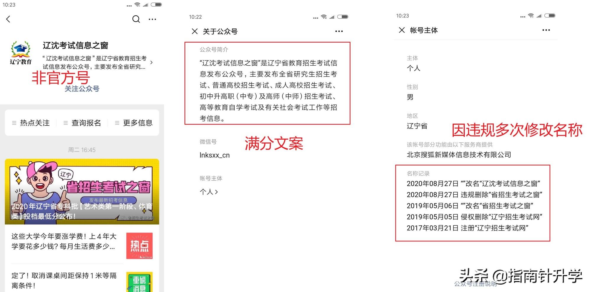 辽宁这边,由于我们有了天津的教训,根本就不屑去搜索“考试之窗”什么的,肯定一堆营销号。结果……是谁手这么欠,找到一个简介这么有迷惑性的,名字也是改了好几次,看图吧。只可惜这个“个人”的账号主体太早地把你给“出卖”了。