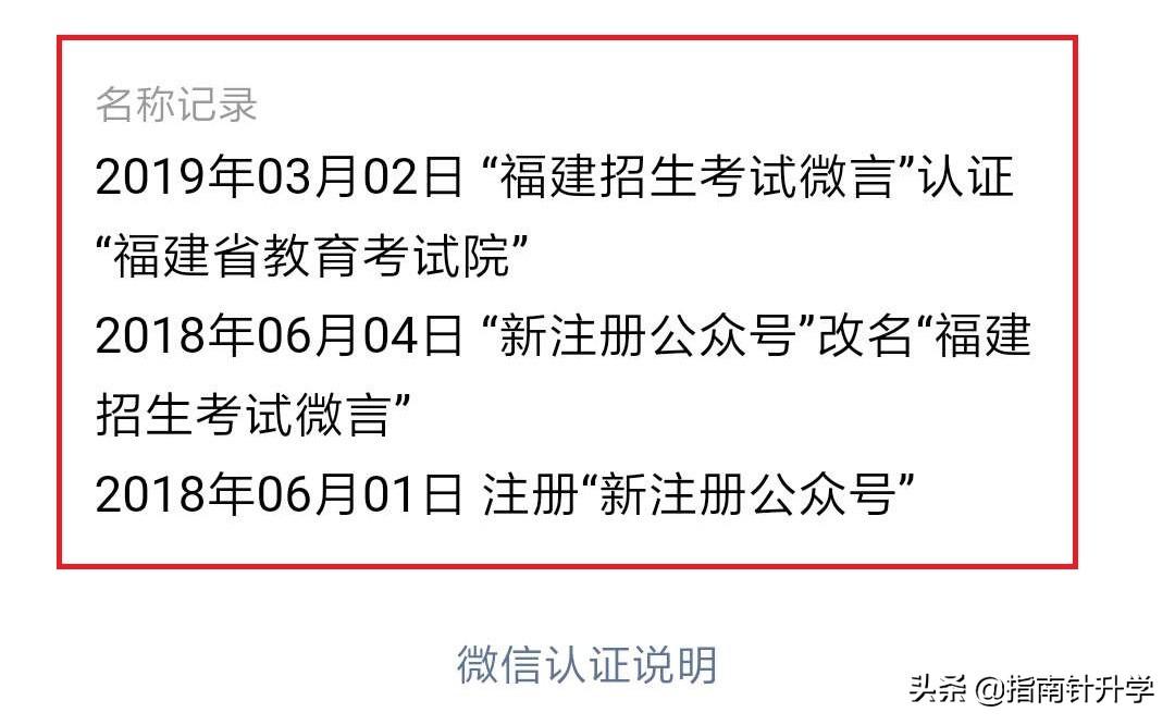 有的中途改了名字,可能是抢注号被微信官方给查处了,才得以“正名”的吧。比如福建教育考试院的公众号,本来叫“福建招生考试微言”,19年更名为“福建省教育考试院”