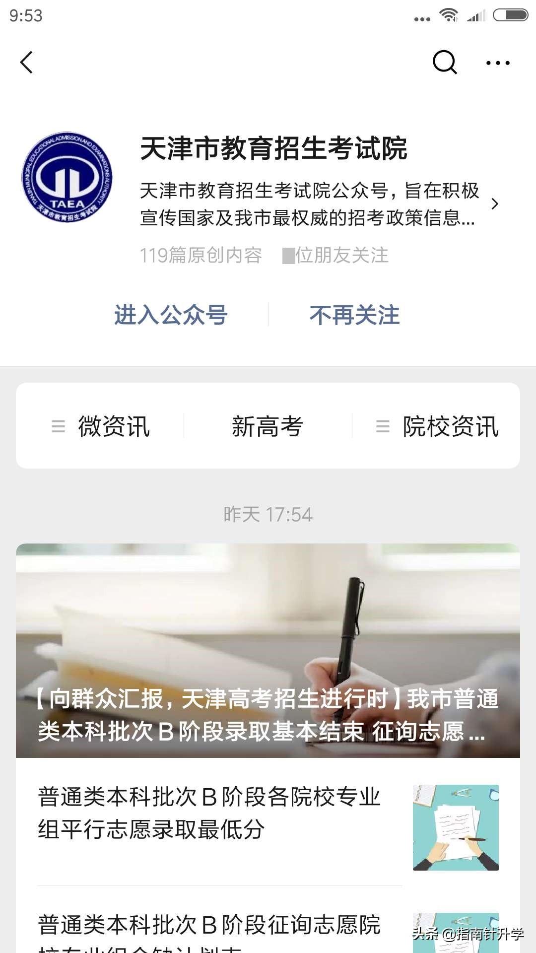 天津市教育招生考试院,官网叫“招考资讯网”,这活整的,唯一一个不带地区标识的官网。我们寻思着公众号也就按这个搜吧,结果搜到一个叫“天津招考资讯网”的公众号。