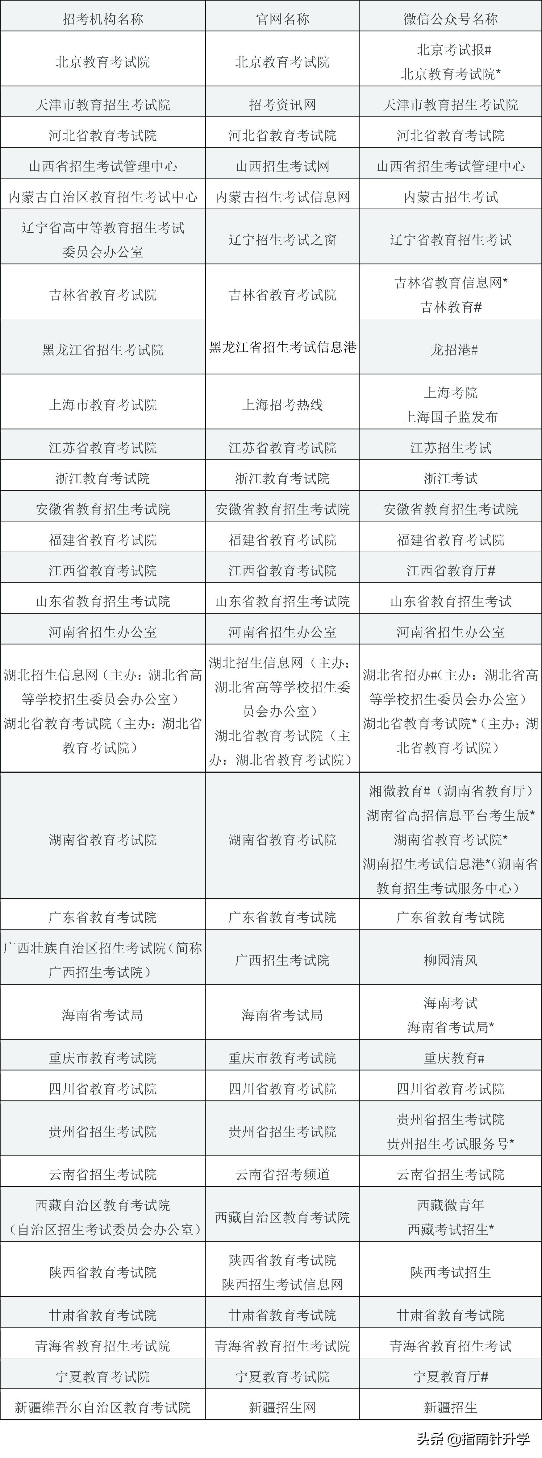 既然说到这,那咱们就来看看各省市的招考机构的官网名称和公众号名称吧。