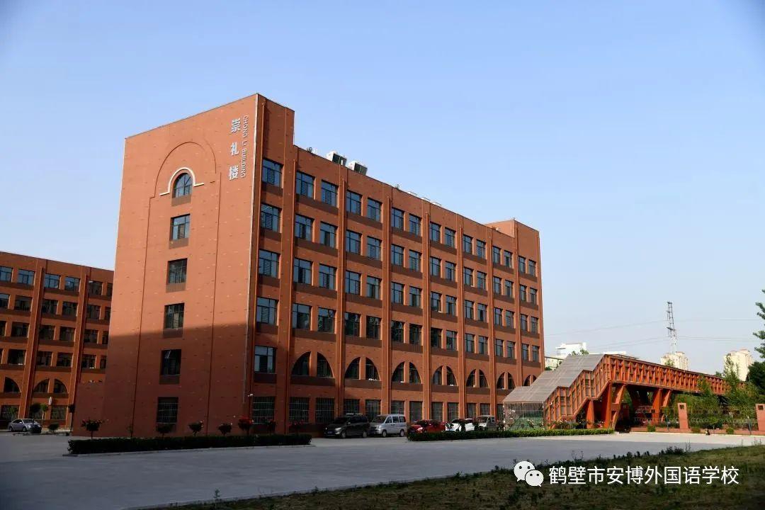 鹤壁市安博外国语学校位于鹤壁新区北部,地理位置优越,交通便利。学校占地85亩,设计规模48个教学班,目前在校生1800余人,教师119人。学校坚持面向全体学生分层次教学,促使学生全面发展,努力建设“现代化、高品位、有外语特色”的优质品牌学校。在全校师生的共同努力下,形成了优良的校风、严谨的学风,以优异的办学成绩赢得了广大家长和社会的赞誉。高中部紧随我市两所省级示范性高中,一本和本科上线率位居全市第三(含两县),在同类学校位居第一。