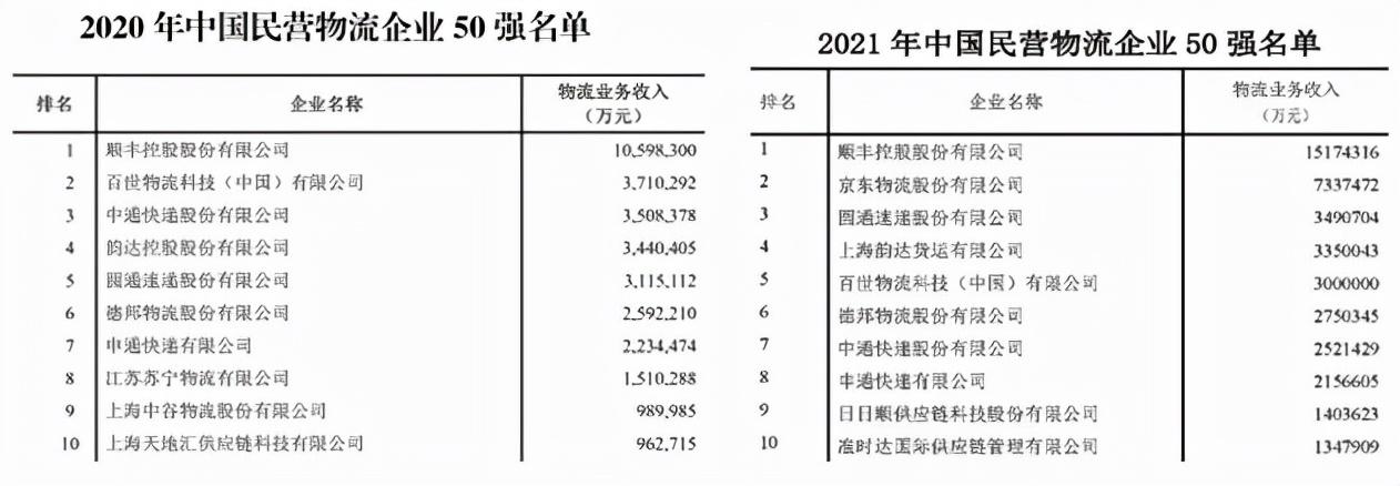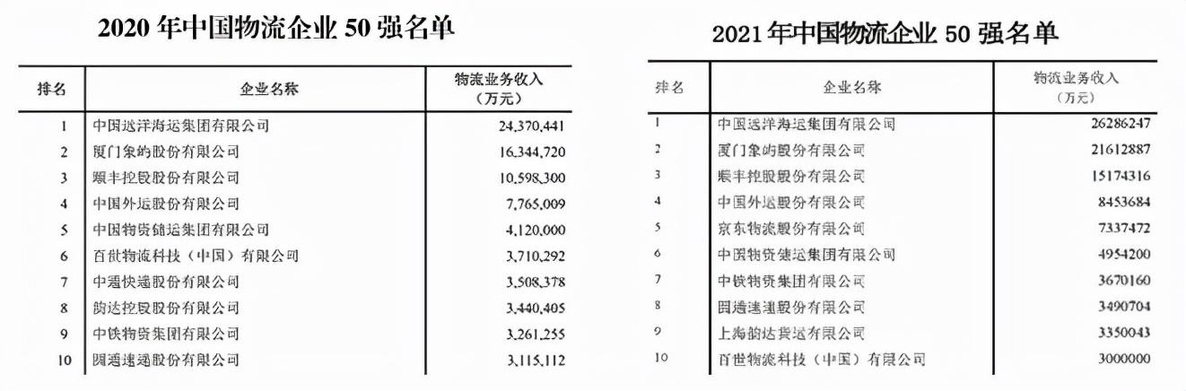 1月7日,中国物流与采购联合会正式对外发布《2021年度中国物流企业50强、民营物流企业50强》名单。名单涵盖了国际海运、快递物流、商贸物流、供应链物流等领域,中远海运、中国外运、顺丰控股、京东物流、中通快递等企业悉数上榜。